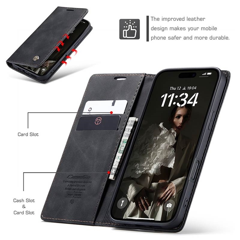 Bær dine viktige kort og kontanter sammen med din iPhone 16 Plus takket være dette Caseme 013-serien lommebok-deksel!