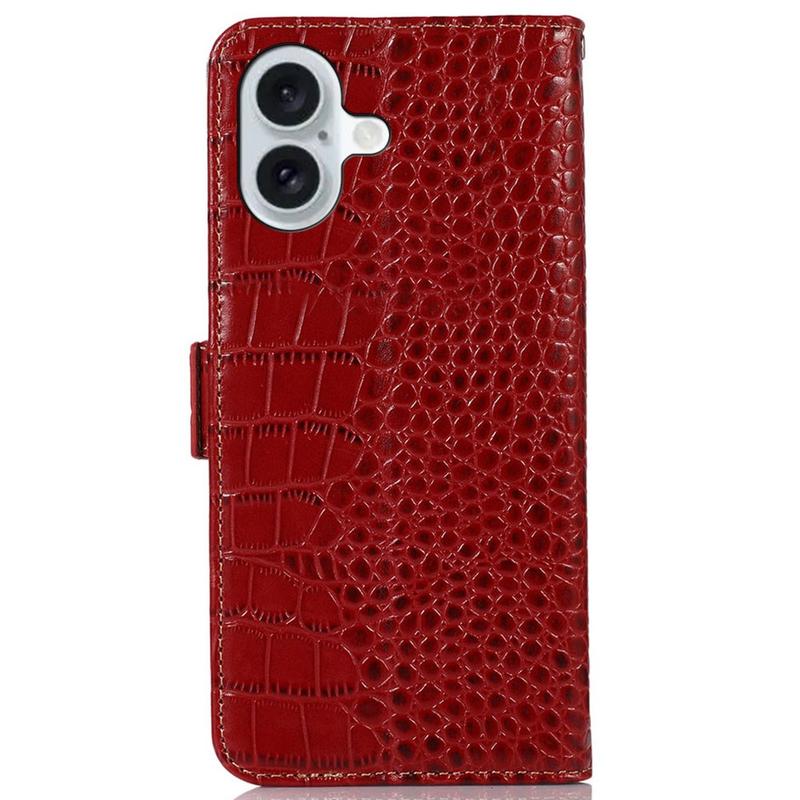 Crocodile Series Lommebok-deksel i Lær med RFID til iPhone 16 Plus