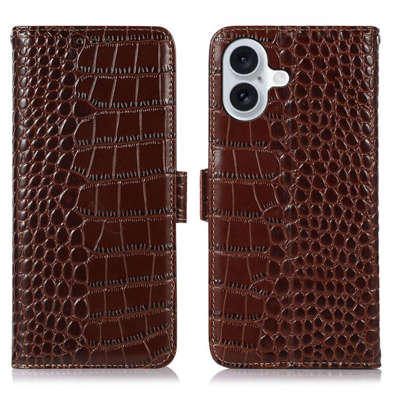 iPhone 16 Plus Crocodile Series Lommebok-deksel i Lær med RFID - Brun
