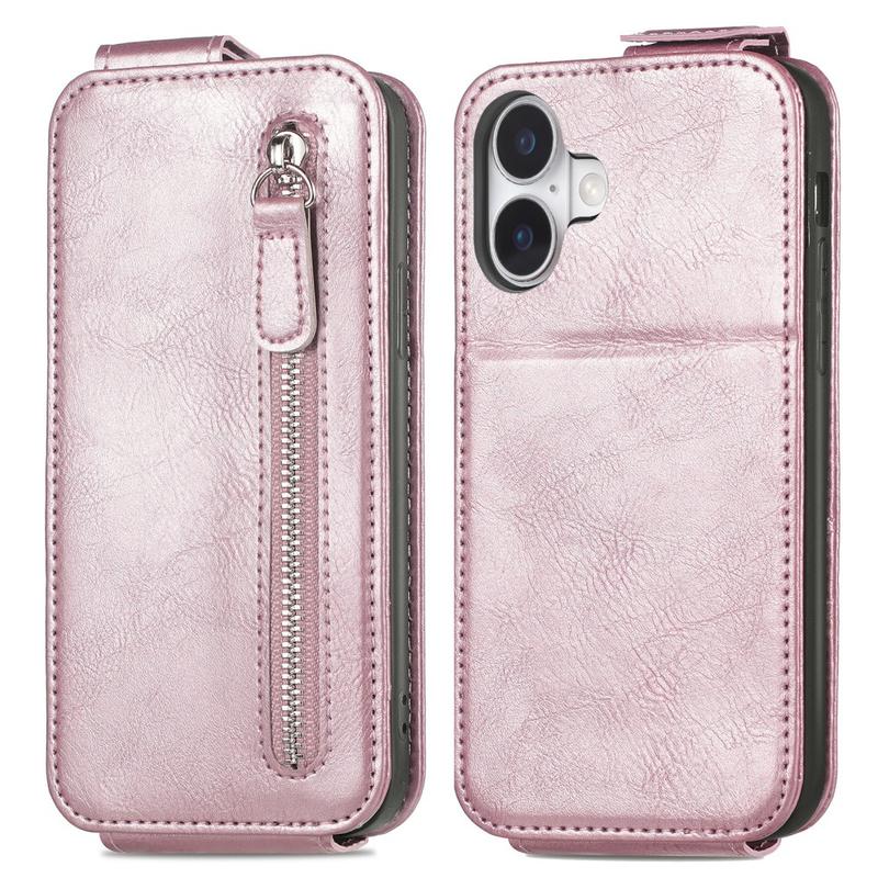 - Elegant glidelås lomme vertikal flip-deksel til iPhone 16 Plus