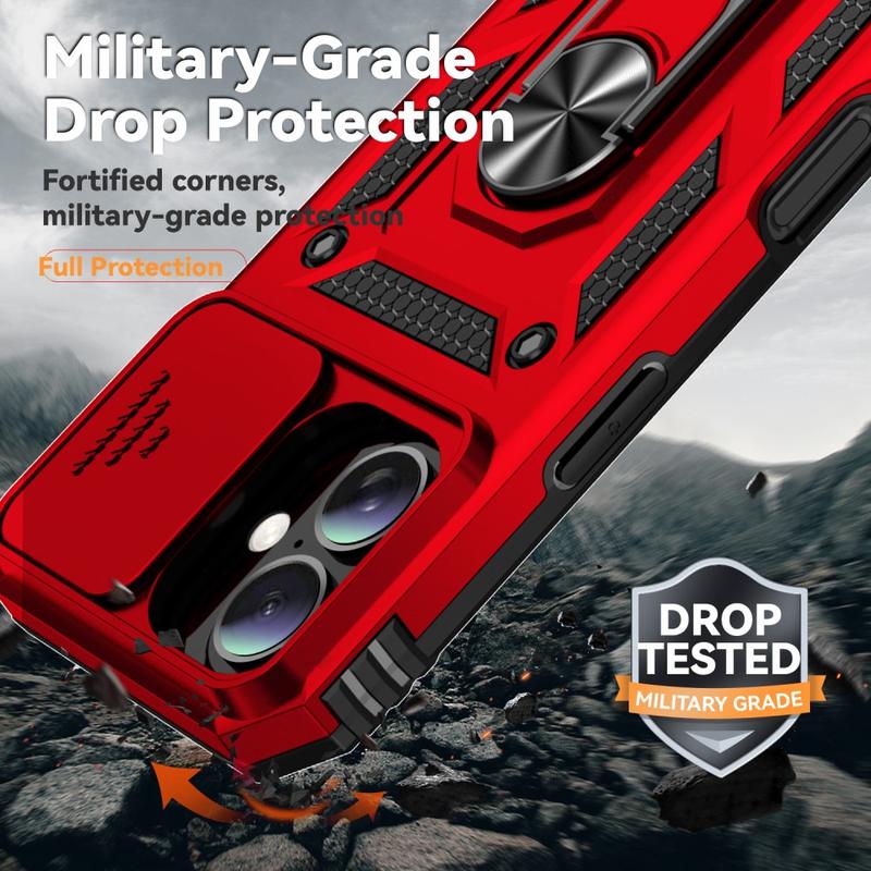 - Roterende ring hybridetui med kameraavskjerming for iPhone 16 Plus