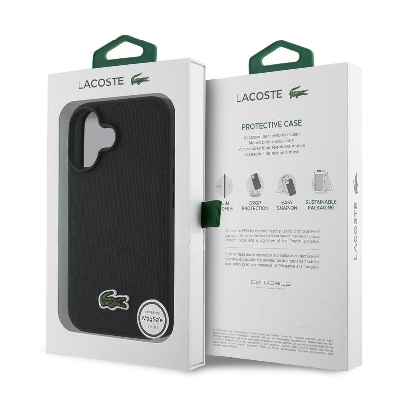 Beskytt din iPhone 16 Plus med Lacoste Iconic Petit Pique Woven Logo MagSafe-etui - et stilig, funksjonelt og høykvalitets tilbehør som gjenspeiler Lacostes eleganse og sporty appell.