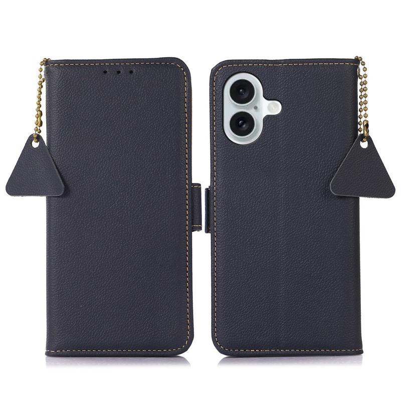 - Lommebokdeksel i lær med RFID-blokkering til iPhone 16 Plus