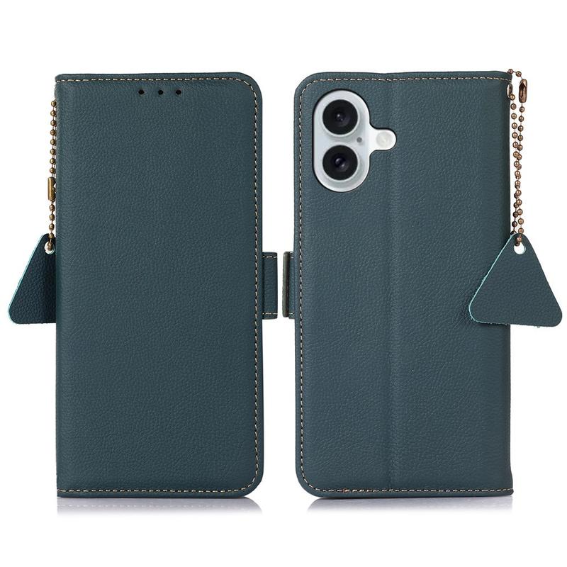 - Lommebokdeksel i lær med RFID-blokkering til iPhone 16 Plus