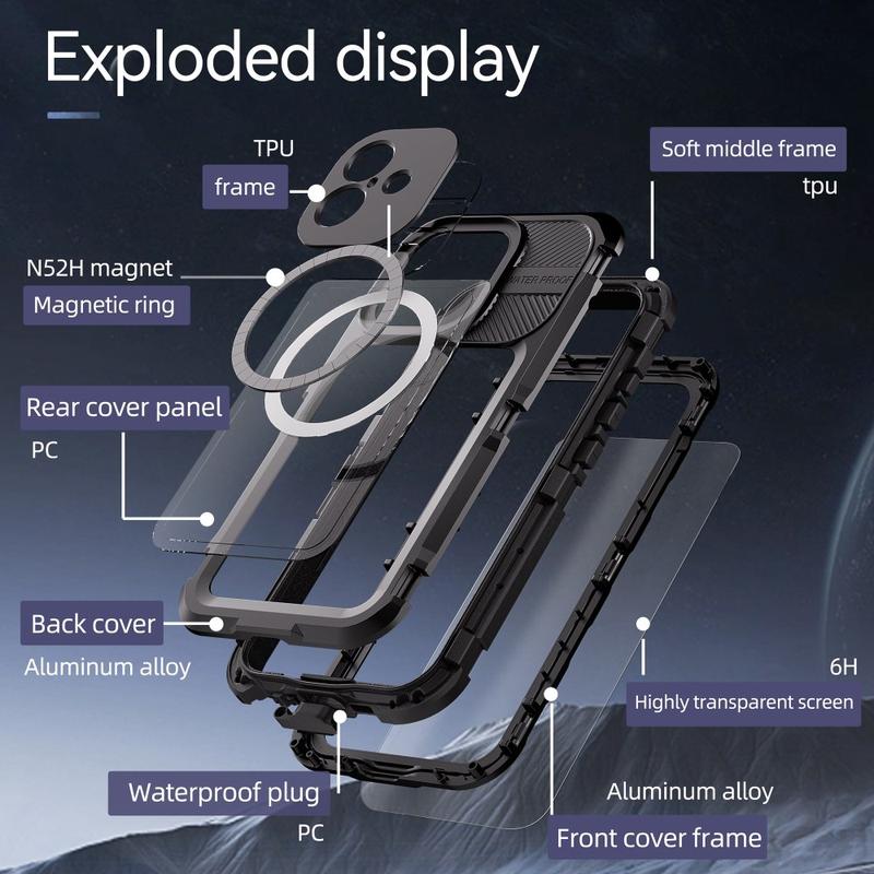Beskytt din iPhone 16 Plus på undervannseventyr med Shellbox M Series IP68 Waterproof Case. Dette dykkerdekselet i metall er konstruert for holdbarhet og gir helkroppsbeskyttelse opp til 15 meter under vann, samtidig som det er MagSafe-kompatibelt for sømløs trådløs lading. Den robuste konstruksjonen sørger for at enheten din forblir sikker under ekstreme forhold, noe som gjør den ideell for dykkere, snorklere og friluftsentusiaster.
