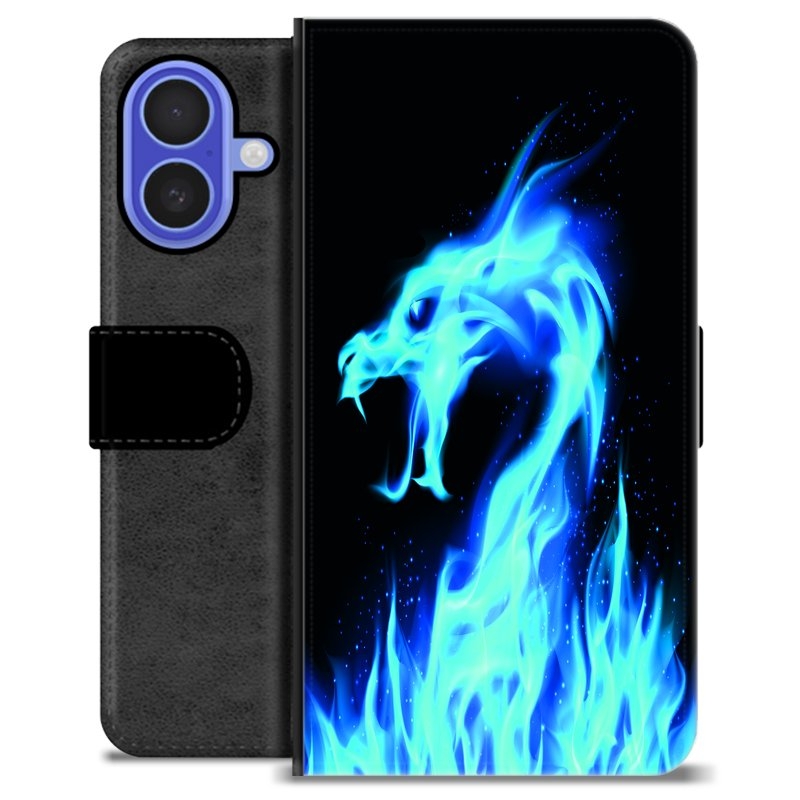 iPhone 16 Premium Lommebok-deksel - Blå Flamme Drage