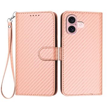 Premium lommebokveske med stropp til iPhone 16 - karbonfiberstruktur
