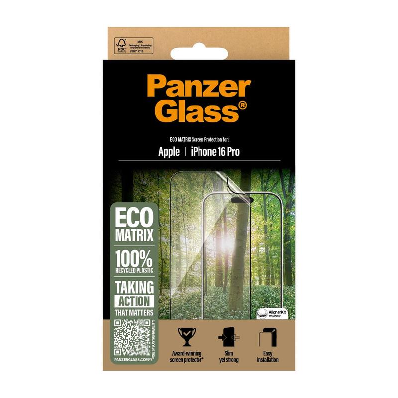 PanzerGlass Eco Matrix Ultra-Wide Fit skjermbeskytter med EasyAligner for iPhone 16 Pro Max - 100 % resirkulert
