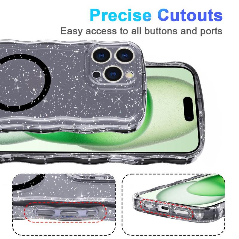 Wave-Edge Laser Glitter MagSafe TPU-deksel for iPhone 16 Pro