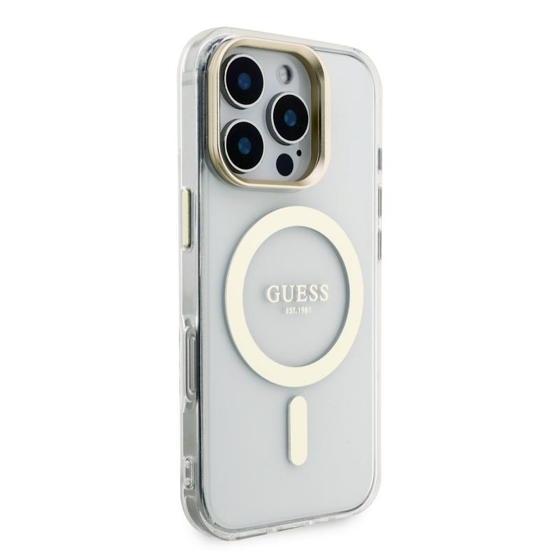 Guess galvanisert MagSafe-etui med stativ og kameraramme med utskiftbare bakgrunner for iPhone 16 Pro - Luksus og hverdagsbeskyttelse i Swap-stil