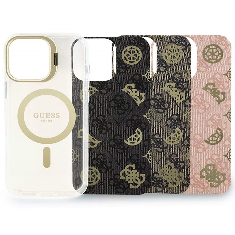 Guess Elektroplatet Stativkameraramme MagSafe-deksel med Utskiftbare Bakgrunner for iPhone 16 Pro Max - Luksus og hverdagsbeskyttelse i Swap-stil
