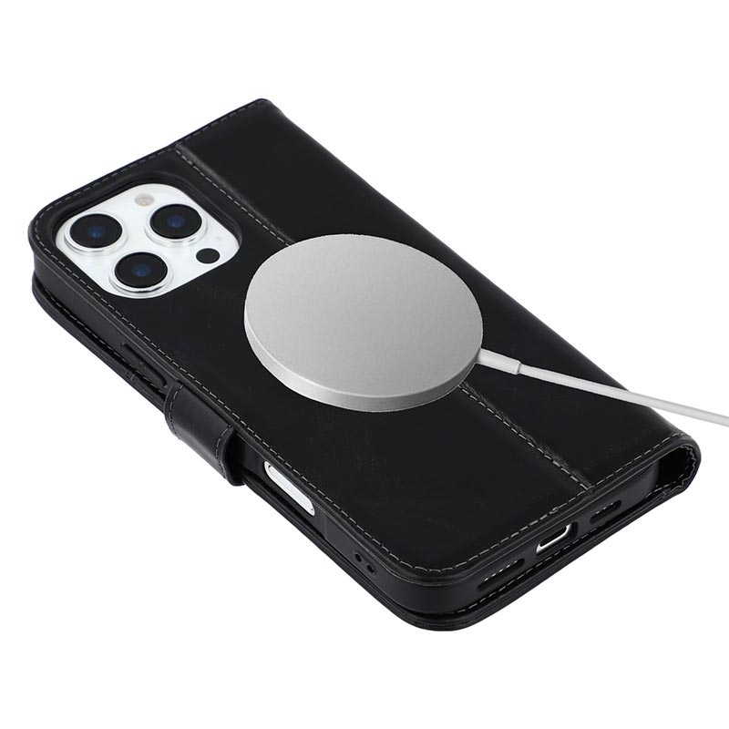 MyTPhone CardMate Premium lommebokveske i lær for iPhone 16 Pro Max - stativfunksjon, kortholder, støtte for trådløs lading, 2x skjermbeskytter