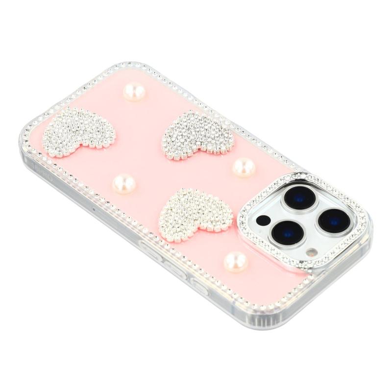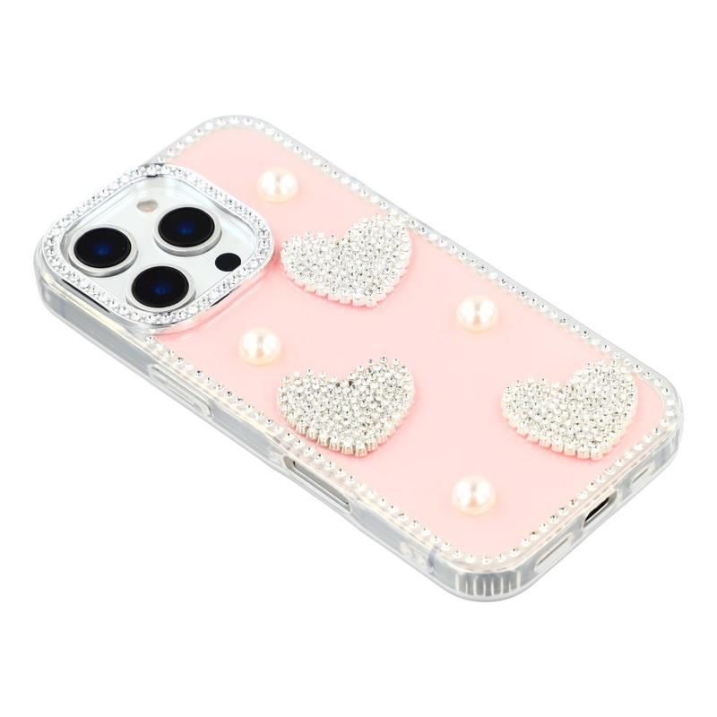 Dette iPhone 16 Pro Max-etuiet kombinerer pålitelig hverdagsbeskyttelse med glamorøs stil. Med glitrende rhinestones rundt kantene og glitrende perlehjertedekorasjoner på baksiden forvandler det din iPhone 16 Pro Max til et moteriktig tilbehør, samtidig som det beskytter den mot riper og støt.