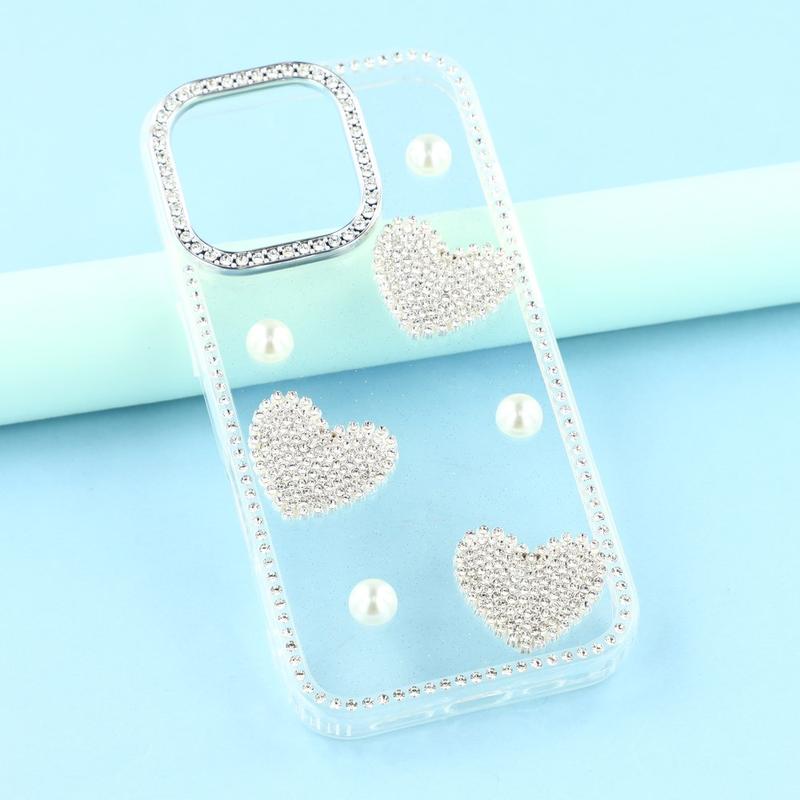 Dette iPhone 16 Pro Max-etuiet kombinerer pålitelig hverdagsbeskyttelse med glamorøs stil. Med glitrende rhinestones rundt kantene og glitrende perlehjertedekorasjoner på baksiden forvandler det din iPhone 16 Pro Max til et moteriktig tilbehør, samtidig som det beskytter den mot riper og støt.