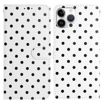 iPhone 16 Pro Max lommebokveske med prikkmønster - hvit