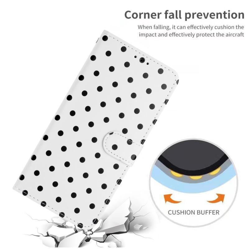 Gi din iPhone 16 Pro Max et sjarmerende og praktisk preg med lommebokvesken med prikkmønster. Det kombinerer leken eleganse med full beskyttelse og hverdagsvennlighet, og er det perfekte tilbehøret for deg som setter pris på både stil og funksjonalitet.