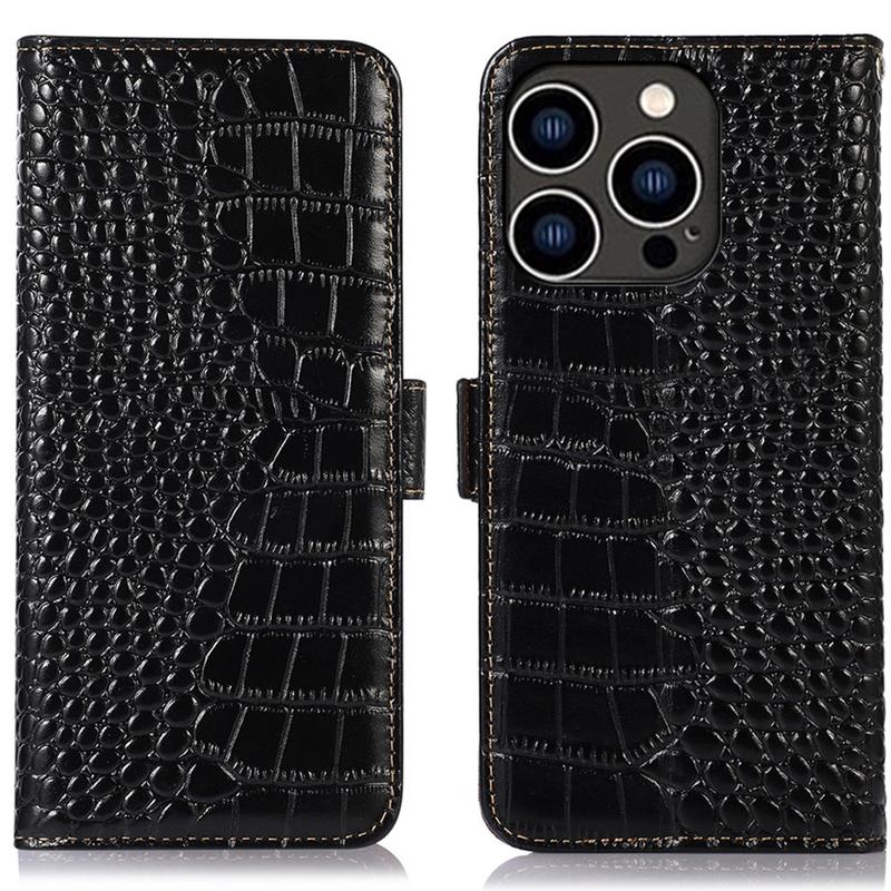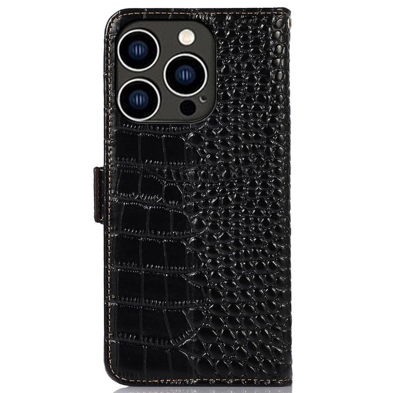 Crocodile Series Lommebok-deksel i Lær med RFID til iPhone 16 Pro