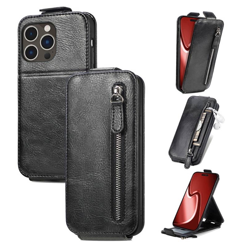 - Elegant glidelås lomme vertikal flip-deksel til iPhone 16 Pro
