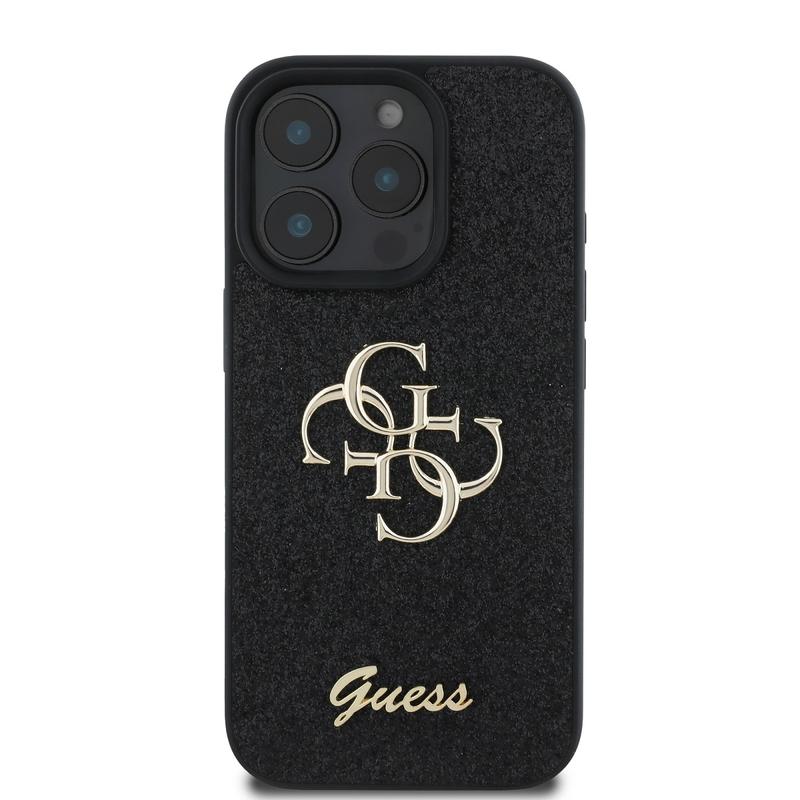 - Spektakulært Guess Fixed Glitter 4G Metal Logo deksel til iPhone 16 Pro Max