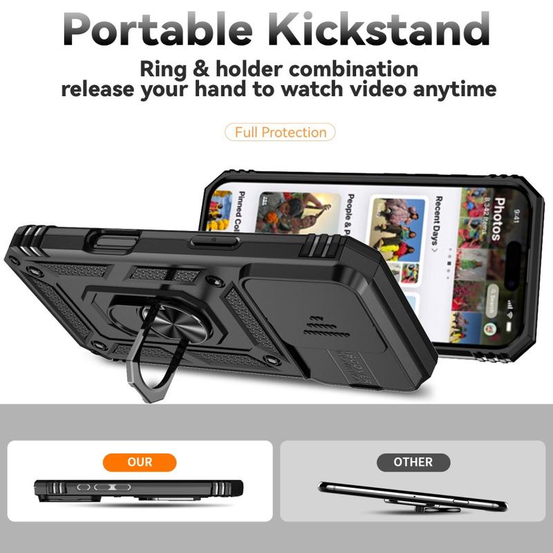 - Roterende ring hybridetui med kameraavskjerming for iPhone 16 Pro Max