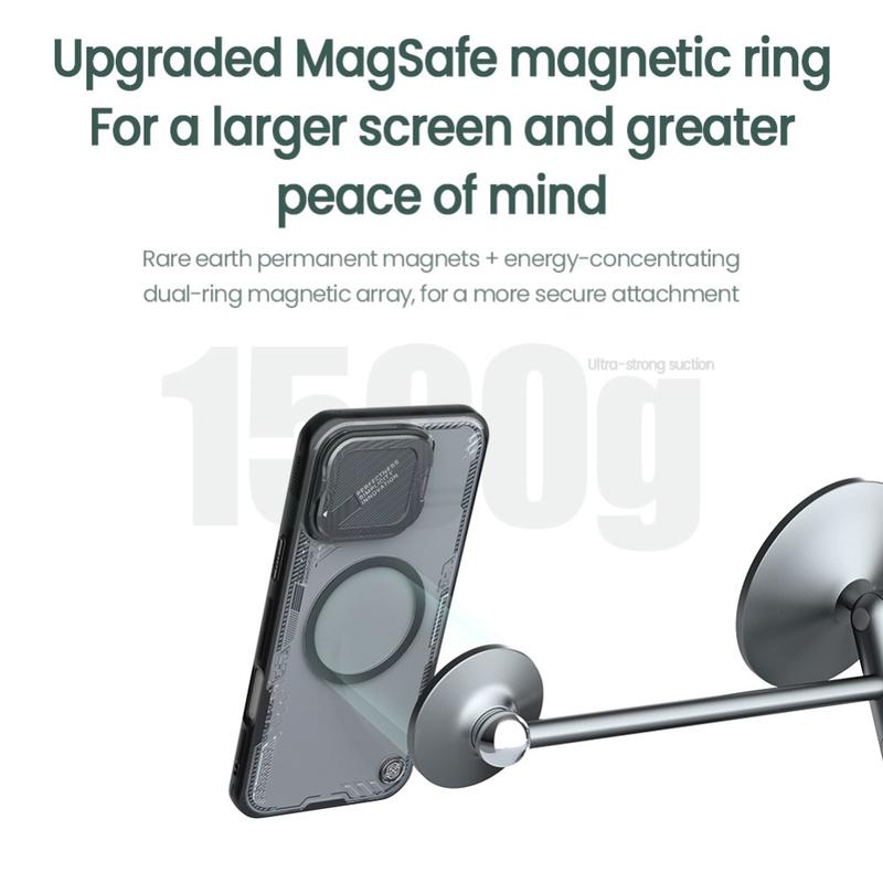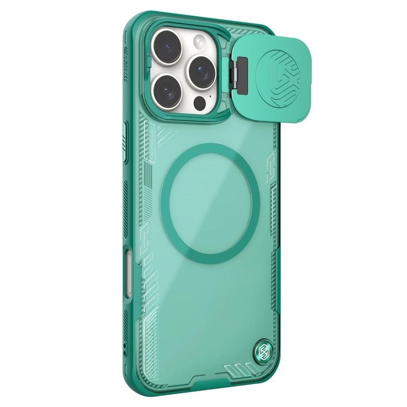 Beskytt din iPhone 16 Pro med Nillkin IceBlade Prop Magnetic Case. Dette elegante etuiet kombinerer holdbarhet med bekvemmelighet, og tilbyr full MagSafe-kompatibilitet. Det er laget av PC og TPU og gir robust beskyttelse, mens det skyvbare linsedekselet beskytter kameraet mot riper og støv.