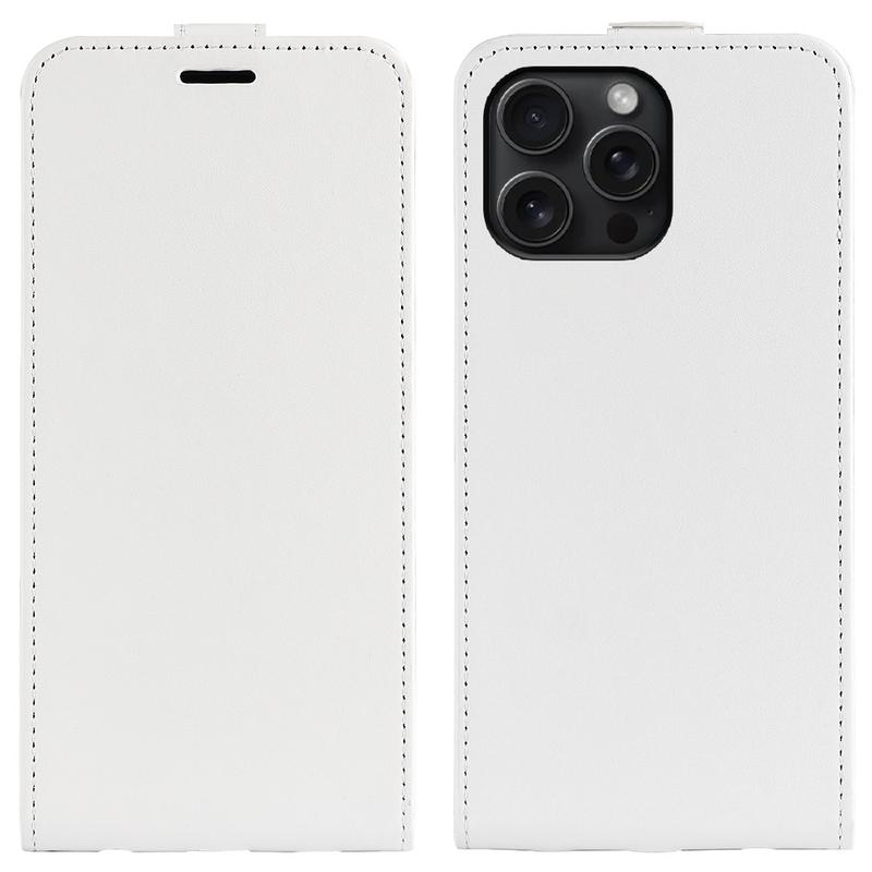 - Elegant vertikalt flip-etui spesifikt designet for iPhone 16 Pro