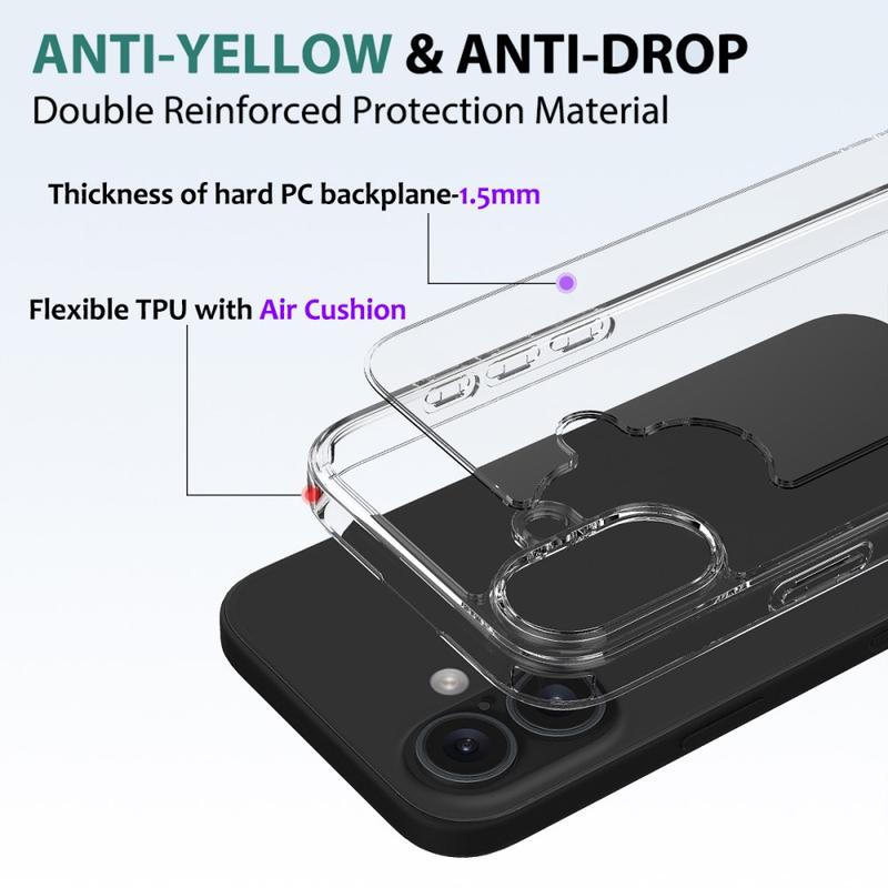 Dette tilbehøret bruker en kombinasjon av akryl og TPU for å holde smarttelefonen i best mulig stand. Samtidig ser forsterkede, støtabsorberende hjørner for å forhindre fallskader, mens den gjennomskinnelige designen viser den vakre utformingen av iPhone 16.