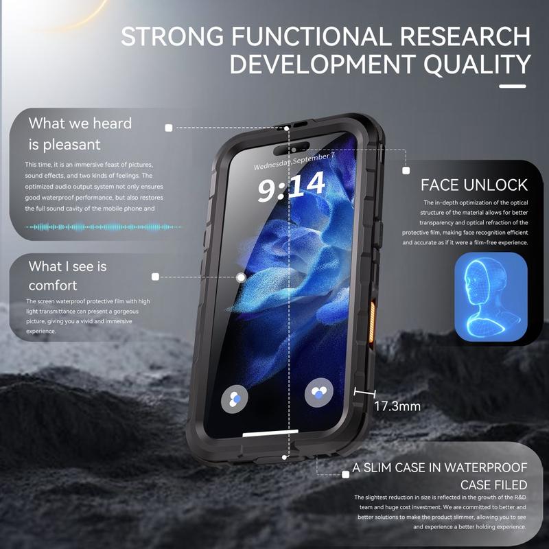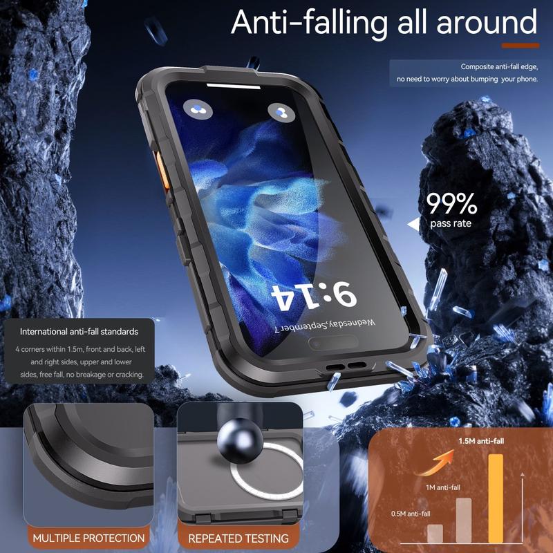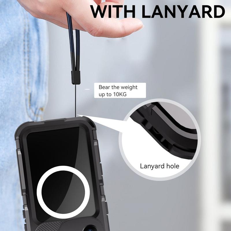 Beskytt din iPhone 16 på undervannseventyr med Shellbox M Series IP68 Waterproof Case. Dette dykkerdekselet i metall er konstruert for holdbarhet og gir helkroppsbeskyttelse opp til 15 meter under vann, samtidig som det er MagSafe-kompatibelt for sømløs trådløs lading. Den robuste konstruksjonen sørger for at enheten din forblir sikker under ekstreme forhold, noe som gjør den ideell for dykkere, snorklere og friluftsentusiaster.