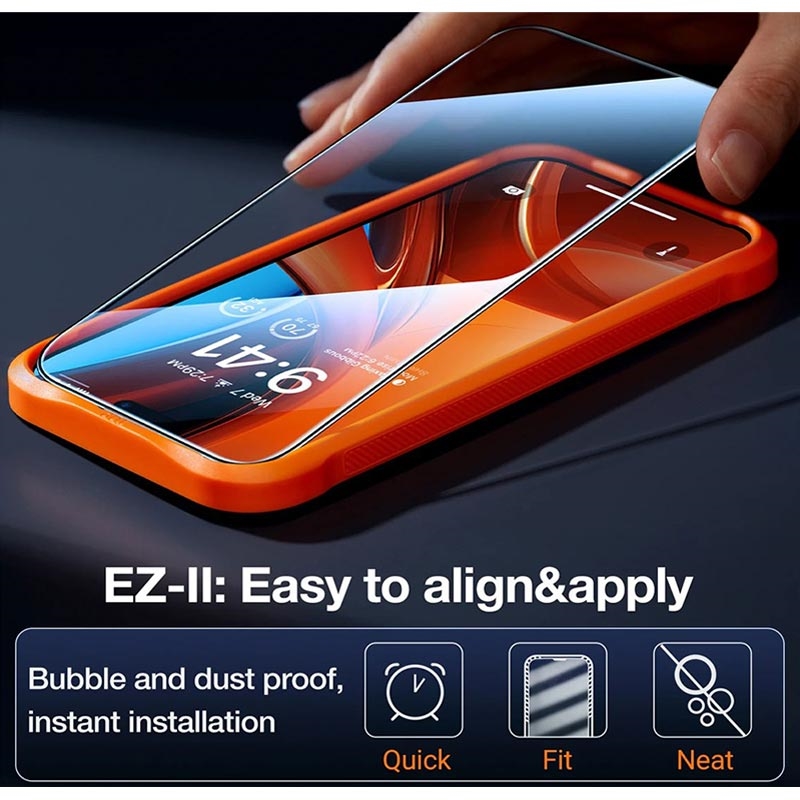 - Enkel installasjon: Auto-Align-rammen gjør det enkelt for alle å installere skjermbeskytteren uten bobler eller feiljustering, perfekt for hjemmebruk.
