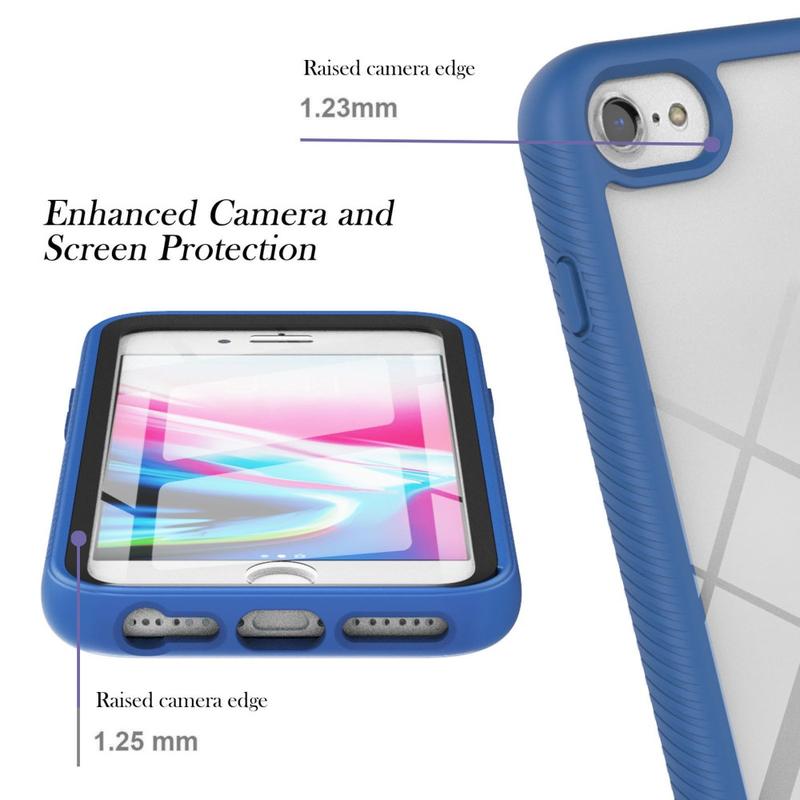 En kombinasjon av TPU-kanter og plastrygg beskytter mot fall, støt, riper og smuss, mens den fremre PET-skjermbeskytteren beskytter skjermen. Hevede kanter rundt kameraet beskytter kameralinsene i tillegg.