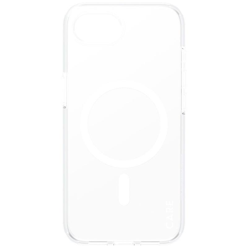 CARE by PanzerGlass Flagship Case for iPhone 16e kombinerer stil og robust beskyttelse. Dette etuiet er laget av 100 % resirkulert plast og har fallbeskyttelse, ripebestandighet og støtdemping av militær klasse. Det gjennomsiktige designet med svart MagSafe-kompatibilitet sørger for at iPhone 16e forblir stilig mens den lades trådløst.