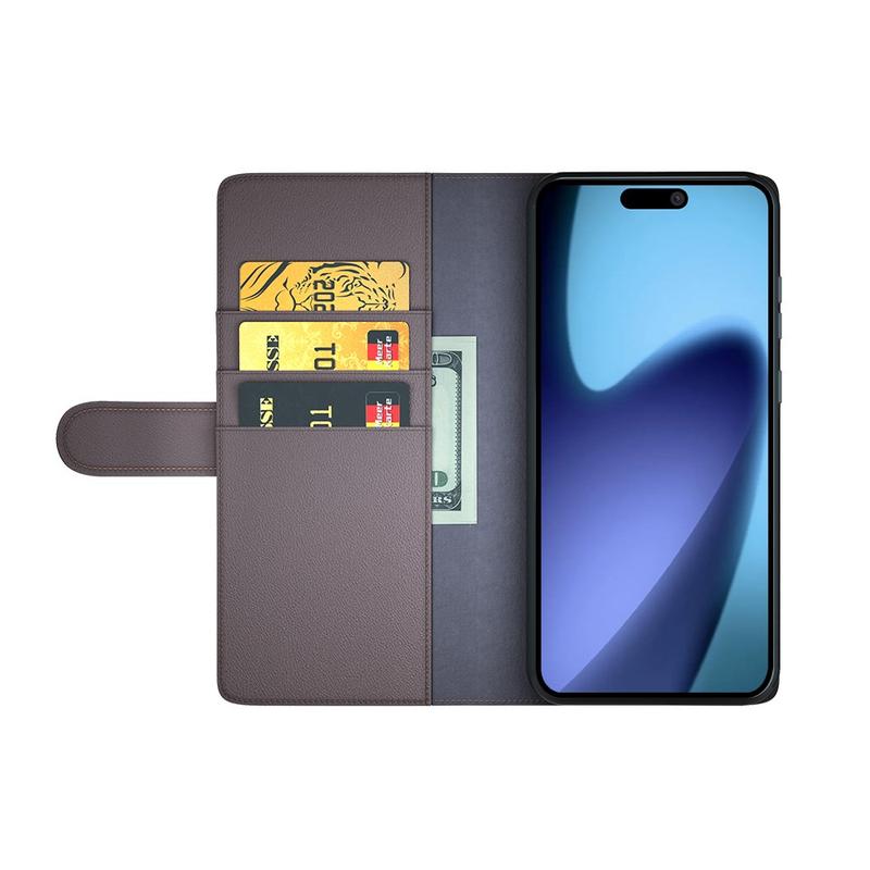 - Materialer: lommebokveske i ekte skinn, innerdeksel av TPU