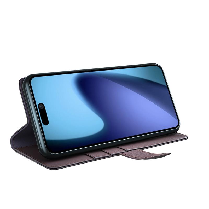 Et sofistikert lærdeksel av høy kvalitet til din iPhone Air. Gi telefonen et førsteklasses utseende, samtidig som du holder den trygg mot riper og vanlige skader. Denne multifunksjonelle lommeboken i mykt skinn har innerlommer for kort og en større lomme for kontanter. I tillegg har iPhone Air ekte skinndeksel håndfri stativ og frontutskjæring for å snakke med lukket etui.