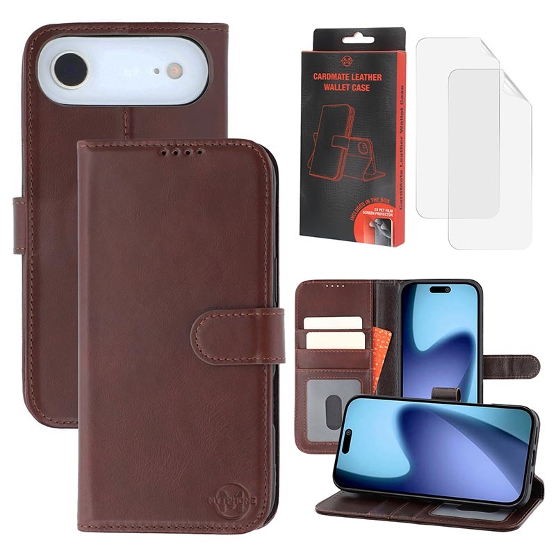 MyTPhone CardMate Premium lommebokveske i lær for iPhone Air - stativfunksjon, kortholder, støtte for trådløs lading, 2x skjermbeskytter