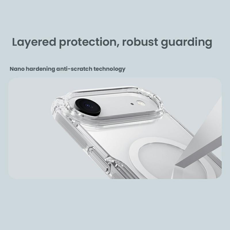 Vis frem den originale finishen på din iPhone Air samtidig som du beskytter den mot livets støt og skrammer. Nillkin Nature Pro kombinerer en krystallklar polykarbonat-bakside med støtdempende TPU-kanter, MagSafe-klare magneter og presist opphøyde lepper rundt skjermen og kameraet - slik at du kan lade, ta bilder og stikke iPhone Air i lommen med full trygghet.