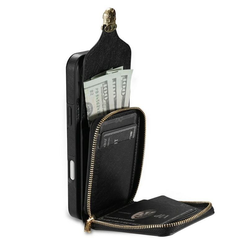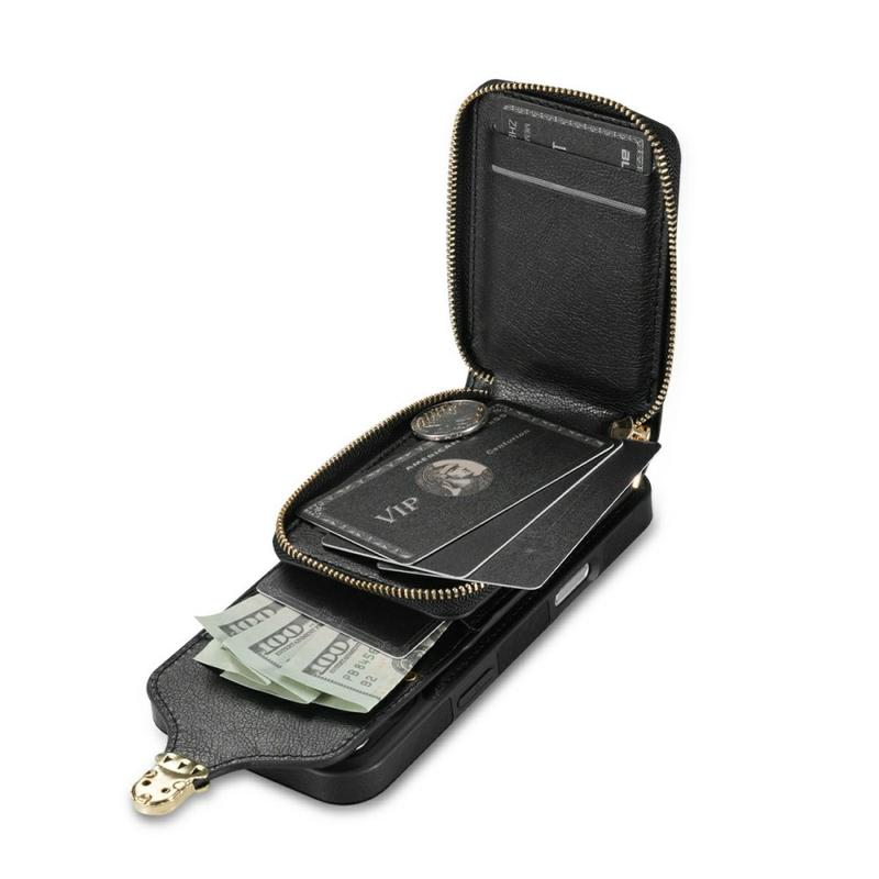 Med dette lommeboketuiet med glidelås for iPhone 17 har du både telefon, kort og kontanter i ett og samme elegante tilbehør. Det er laget av slitesterkt TPU belagt med førsteklasses polyuretanskinn, og gir beskyttelse i hverdagen samtidig som det erstatter behovet for en separat lommebok. Perfekt for deg som vil ha stil, bekvemmelighet og sikkerhet i ett.