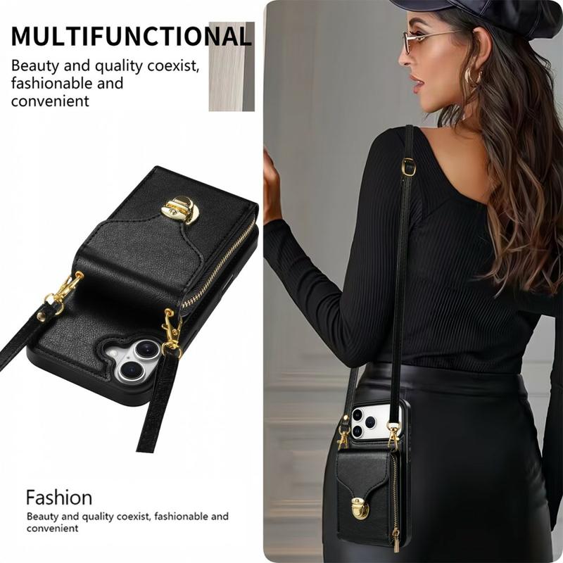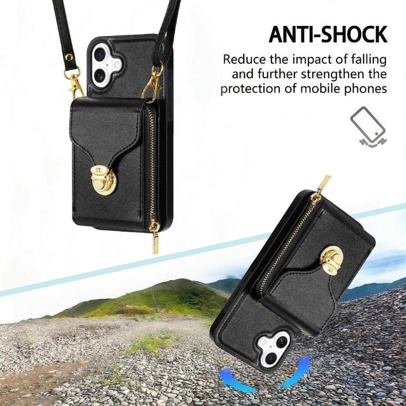Alt-i-ett beskyttende TPU-deksel med lommebok og stropp til iPhone 17