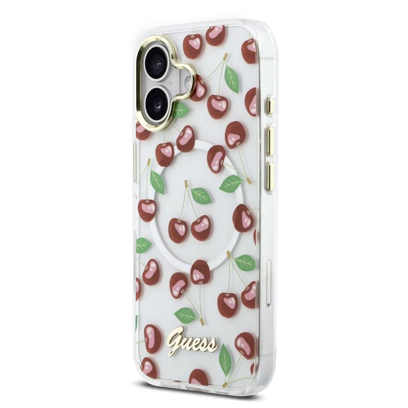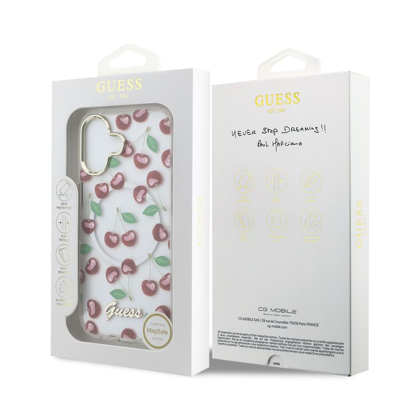 Guess IML Glitter Cherry MagSafe Hybrid-deksel til iPhone 17 - PC- og TPU-beskyttende bakdeksel