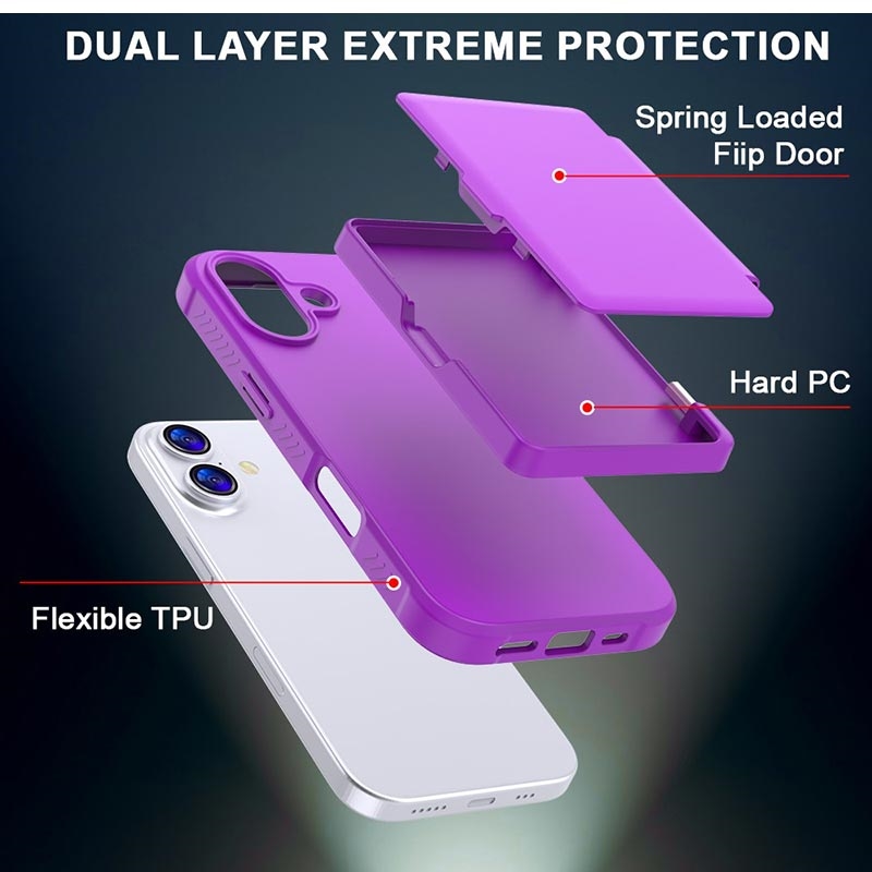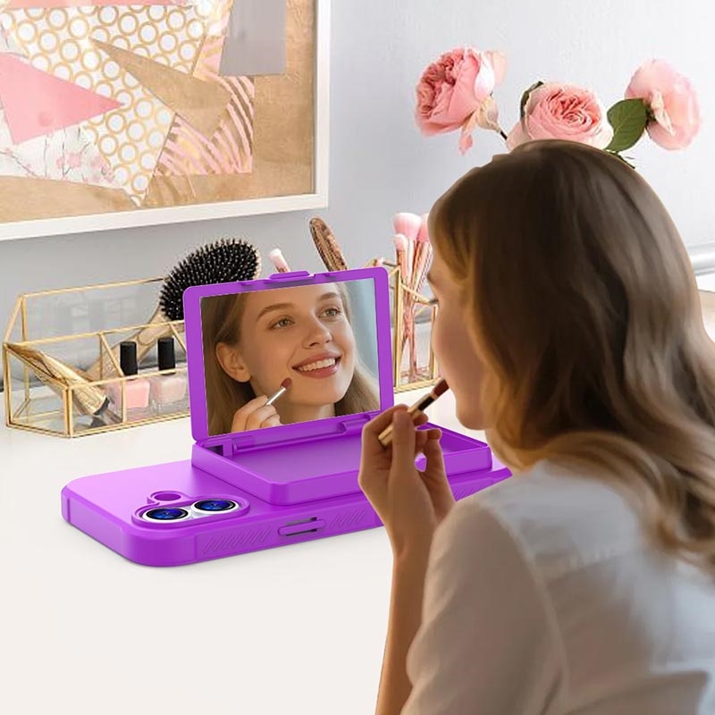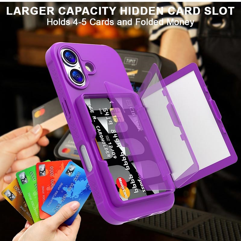 iPhone 17 Hybrid-deksel med Speil og Kortholder - Lilla