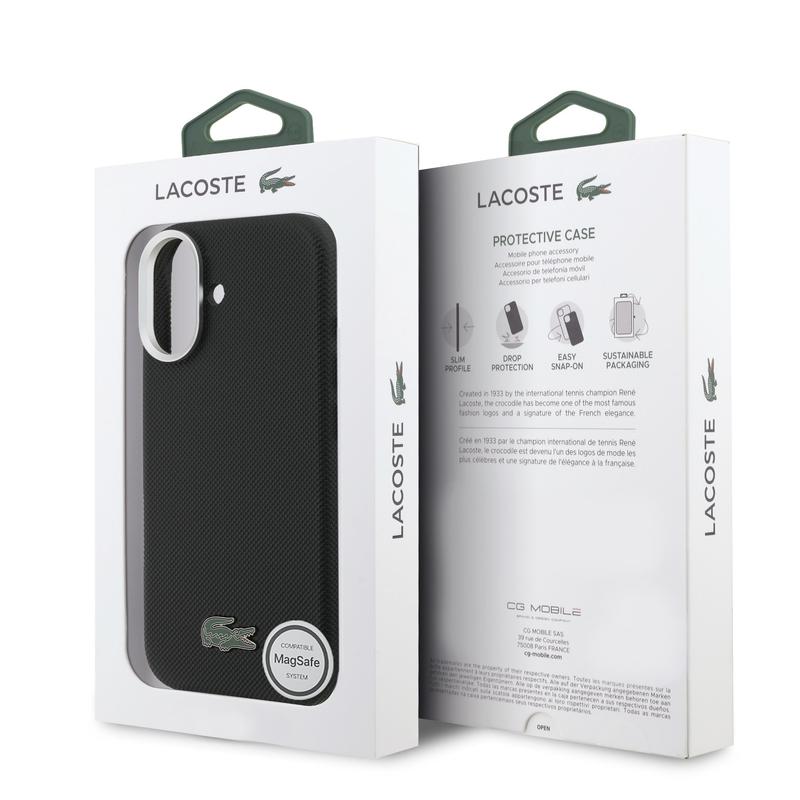 iPhone 16 Lacoste Blend Monogram-deksel - MagSafe-kompatibelt - Svart