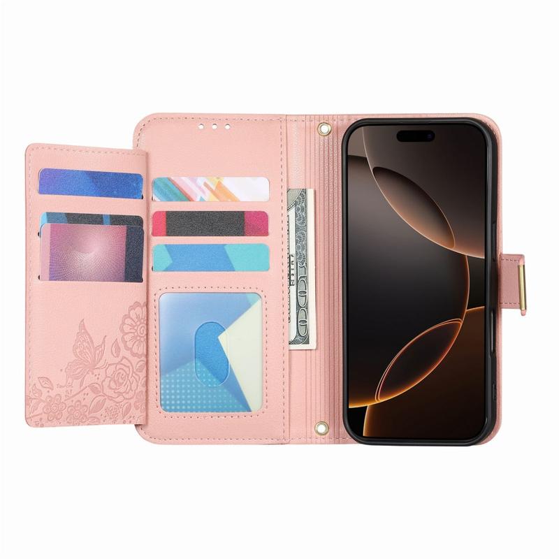 I motsetning til vanlige iPhone 17-etuier kombinerer dette alt-i-ett-etuiet beskyttelse, organisering og eleganse. Blomstertrykket gir det en stilig kant, mens glidelåslommen og håndleddsstroppen gir uovertruffen bekvemmelighet i hverdagen og på reise.