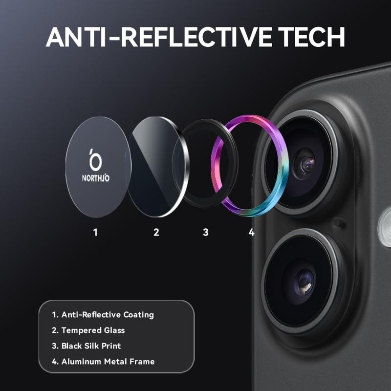 Oppgrader din iPhone 17 med Northjo kameralinsebeskytter. Med en aluminiumsring med CD-nerver gir den en elegant, moderne touch til din iPhone 17, samtidig som den gir robust beskyttelse. Det 9H herdede glasset beskytter mot riper, støt og støv, og sørger for at kameralinsen forblir krystallklar. Med enkel, verktøyfri montering kan du forbedre holdbarheten og estetikken til din iPhone 17 på få sekunder.