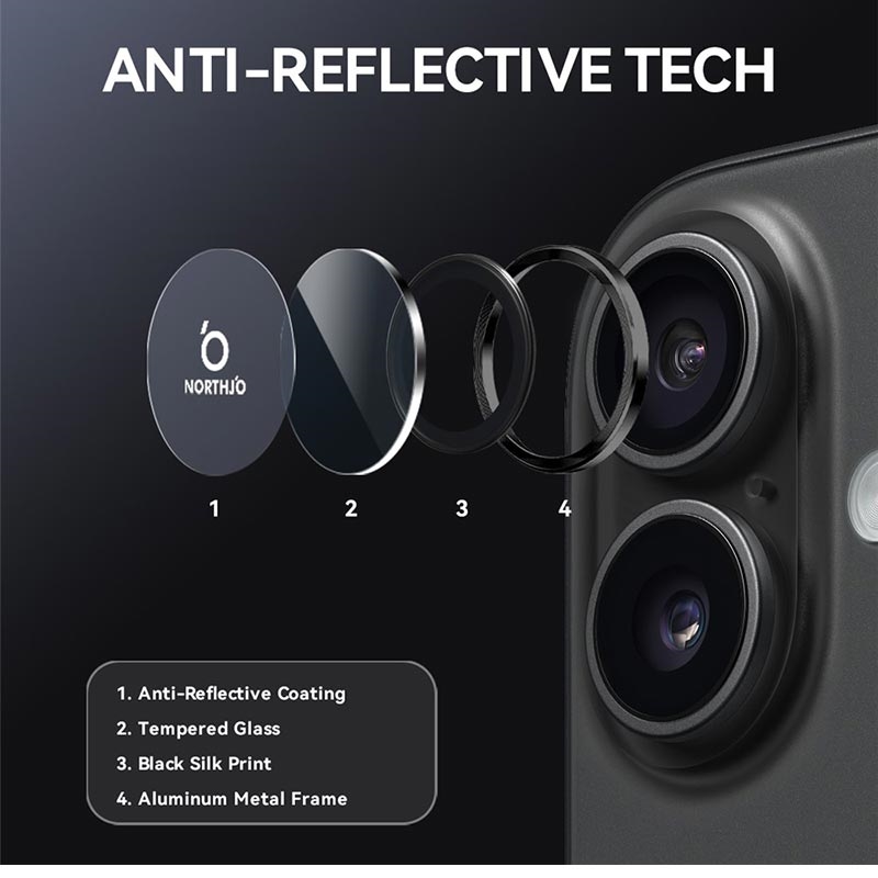 Oppgrader din iPhone 17 med Northjo kameralinsebeskytter. Med en aluminiumsring med CD-nerver gir den en elegant, moderne touch til din iPhone 17, samtidig som den gir robust beskyttelse. Det 9H herdede glasset beskytter mot riper, støt og støv, og sørger for at kameralinsen forblir krystallklar. Med enkel, verktøyfri montering kan du forbedre holdbarheten og estetikken til din iPhone 17 på få sekunder.