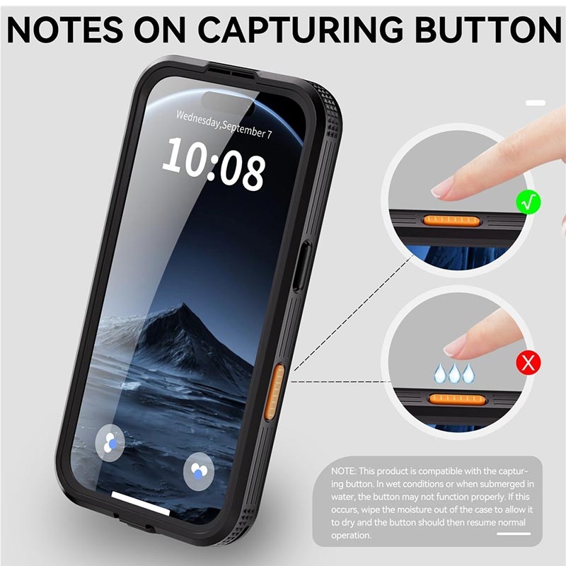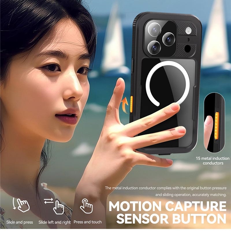 Beskytt din iPhone 17 Pro på undervannseventyr med Shellbox M Series IP68 Waterproof Case. Dette dykkerdekselet i metall er konstruert for holdbarhet og gir helkroppsbeskyttelse opp til 15 meter under vann, samtidig som det er MagSafe-kompatibelt for sømløs trådløs lading. Den robuste konstruksjonen sørger for at enheten din forblir sikker under ekstreme forhold, noe som gjør den ideell for dykkere, snorklere og friluftsentusiaster.