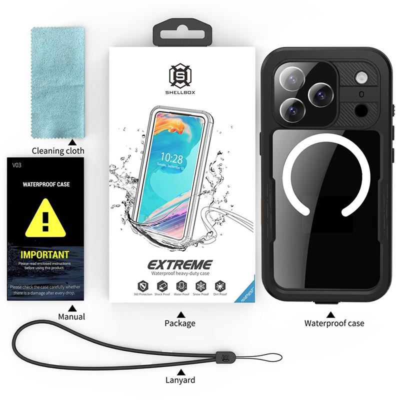 Utstyr din iPhone 17 Pro med Shellbox M Series Waterproof Case, og gå trygt ut på ditt neste eventyr, vel vitende om at enheten din er beskyttet og klar for action.