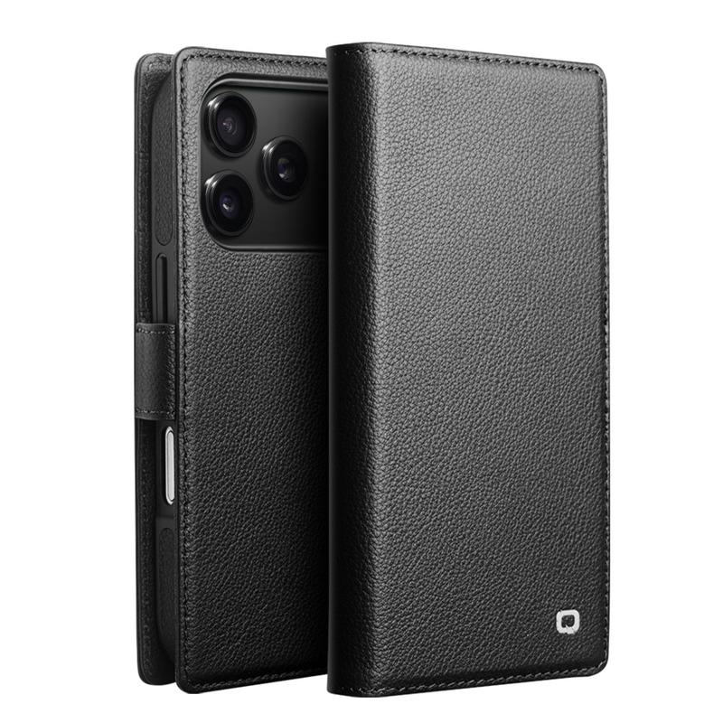 QIALINO iPhone 17 Pro Max Wallet Case er laget av førsteklasses, ekte okseskinn, som gir en myk og elegant følelse med utmerket holdbarhet. Det er motstandsdyktig mot fukt og slitasje, og sikrer langvarig bruk samtidig som det gir enheten din et raffinert preg.