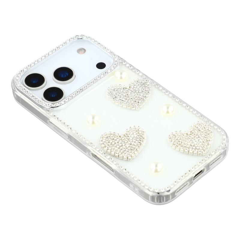 Dette iPhone 17 Pro-etuiet kombinerer pålitelig hverdagsbeskyttelse med glamorøs stil. Med glitrende rhinestones rundt kantene og glitrende perlehjertedekorasjoner på baksiden forvandler det din iPhone 17 Pro til et moteriktig tilbehør, samtidig som det beskytter den mot riper og støt.