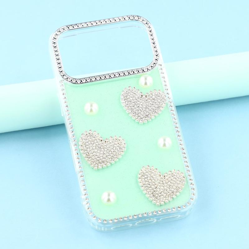 Dette iPhone 17 Pro Max-etuiet kombinerer pålitelig hverdagsbeskyttelse med glamorøs stil. Med glitrende rhinestones rundt kantene og glitrende perlehjertedekorasjoner på baksiden forvandler det din iPhone 17 Pro Max til et moteriktig tilbehør, samtidig som det beskytter den mot riper og støt.