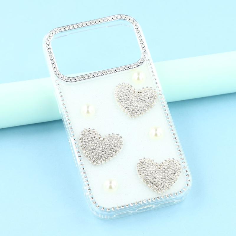 Dette iPhone 17 Pro Max-etuiet kombinerer pålitelig hverdagsbeskyttelse med glamorøs stil. Med glitrende rhinestones rundt kantene og glitrende perlehjertedekorasjoner på baksiden forvandler det din iPhone 17 Pro Max til et moteriktig tilbehør, samtidig som det beskytter den mot riper og støt.