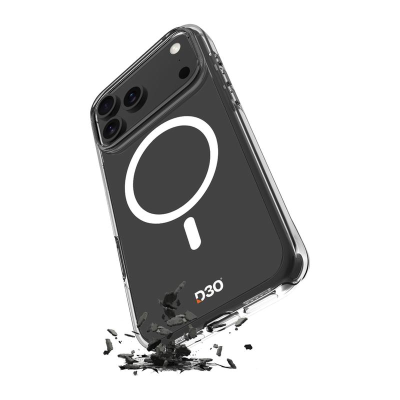 Puro Impact Clear D3O MagSafe-etui for iPhone 17 Pro gir førsteklasses beskyttelse uten å skjule telefonens design. Det er slankt, gjennomsiktig og motstandsdyktig mot gulfarging, og kombinerer avansert støtbeskyttelse med elegant estetikk.